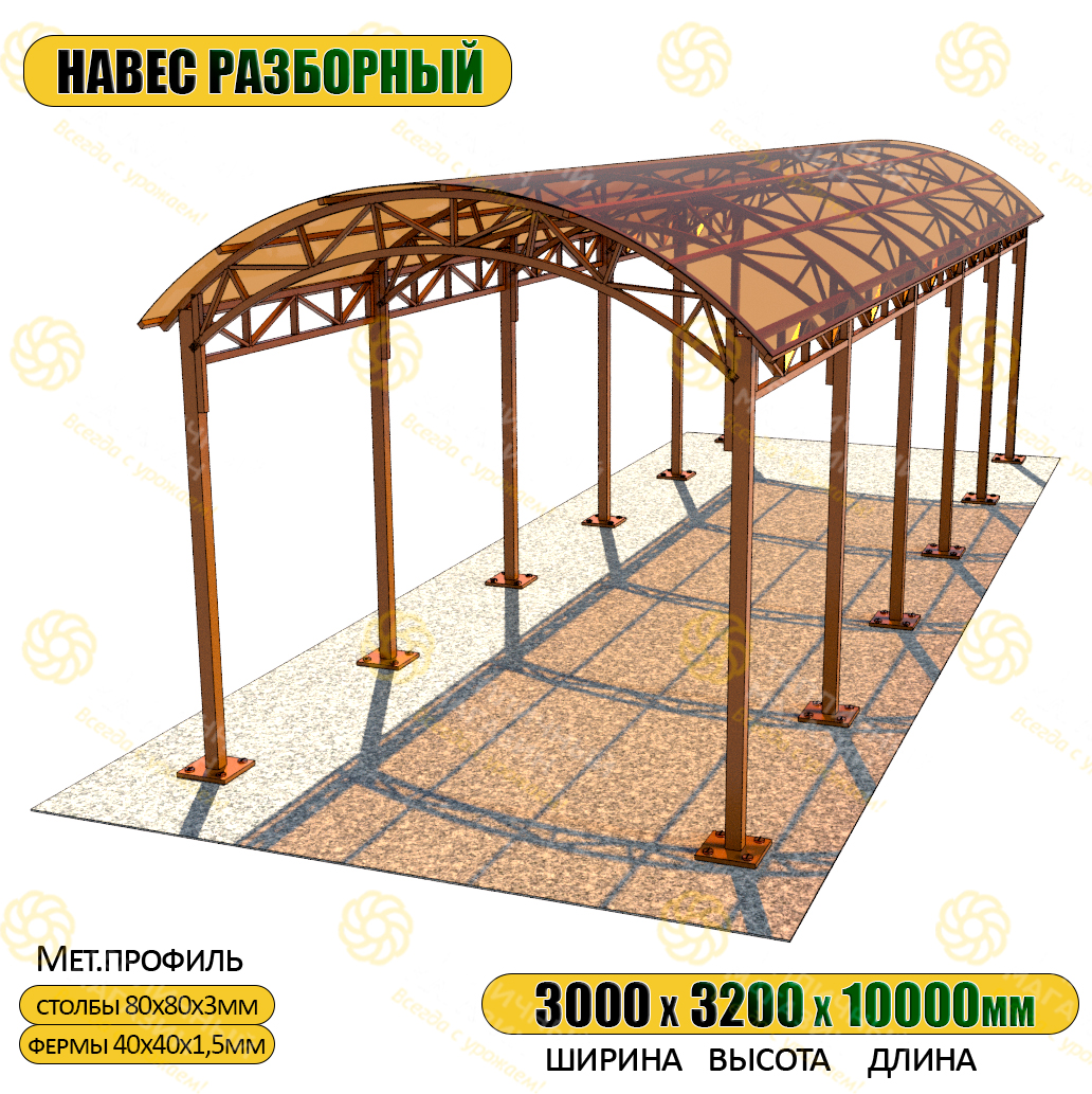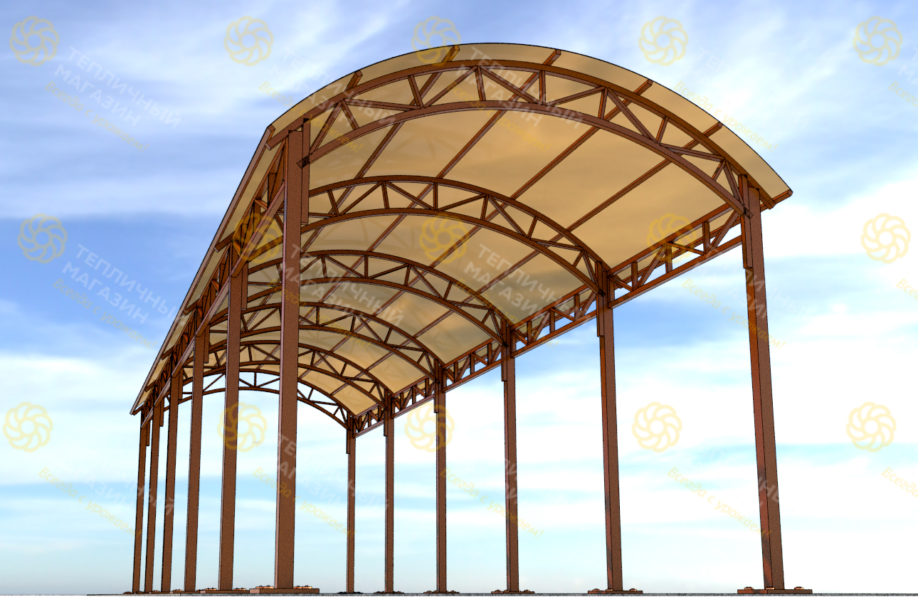 Арочные навесы являются одними из самых распространенных видов, которые встречаются как в частном секторе (жилые строения, приусадебные участки, навесы для машины), так и в городской и промышленной инфраструктуре (навесы к зданиям, автостоянки, ангары и т.д.). Имеется множество вариантов арочных навесов, в нашем магазине есть варианты, как стандартных навесов, так и изготовление индивидуальных заказов по желанию клиента.