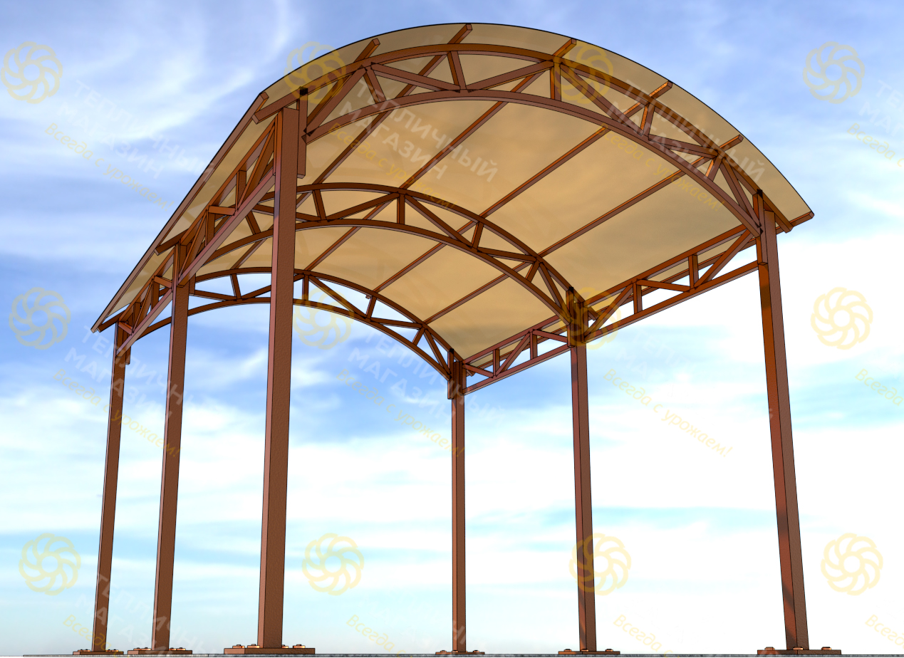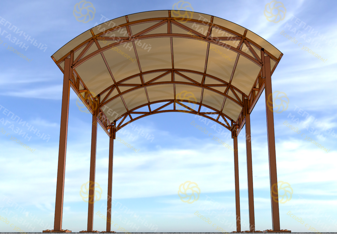 Арочные навесы являются одними из самых распространенных видов, которые встречаются как в частном секторе (жилые строения, приусадебные участки, навесы для машины), так и в городской и промышленной инфраструктуре (навесы к зданиям, автостоянки, ангары и т.д.). Имеется множество вариантов арочных навесов, в нашем магазине есть варианты, как стандартных навесов, так и изготовление индивидуальных заказов по желанию клиента.