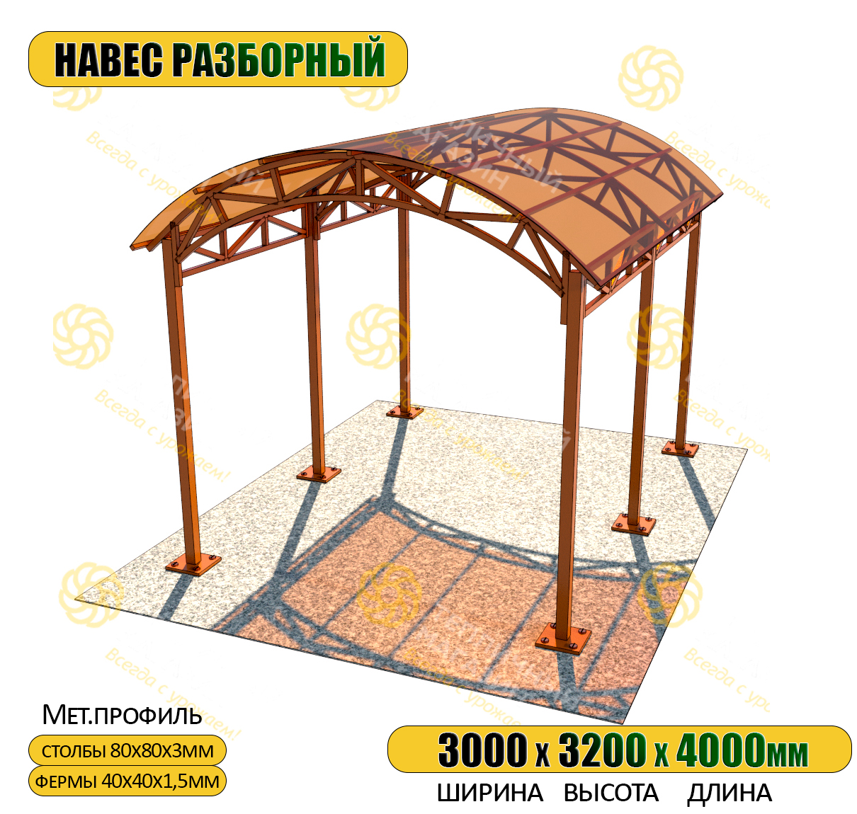 Конструкция классического арочного навеса достаточно простая и состоит из: