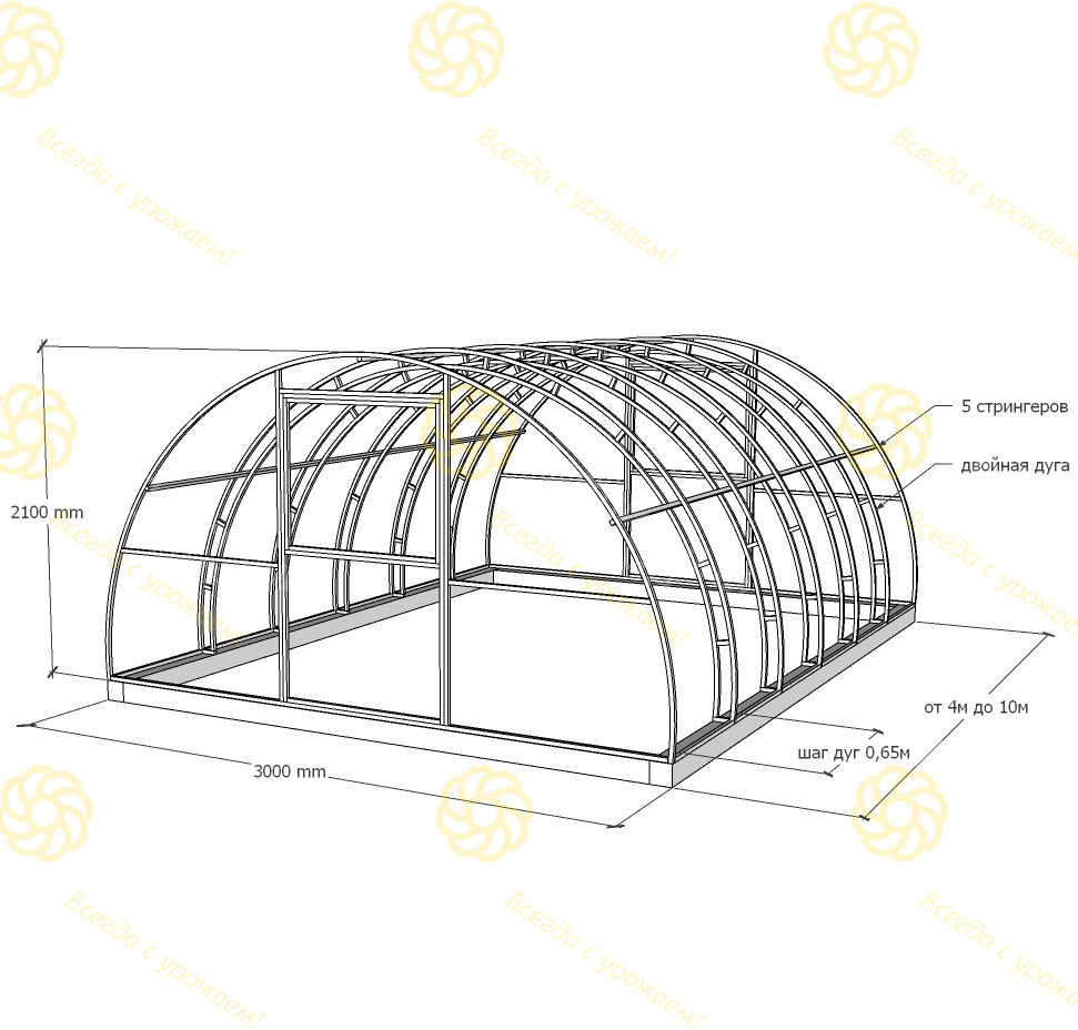 - Шаг между дугами - 0,65 м, что создает удобный доступ к растениям и оптимальные условия для их роста.