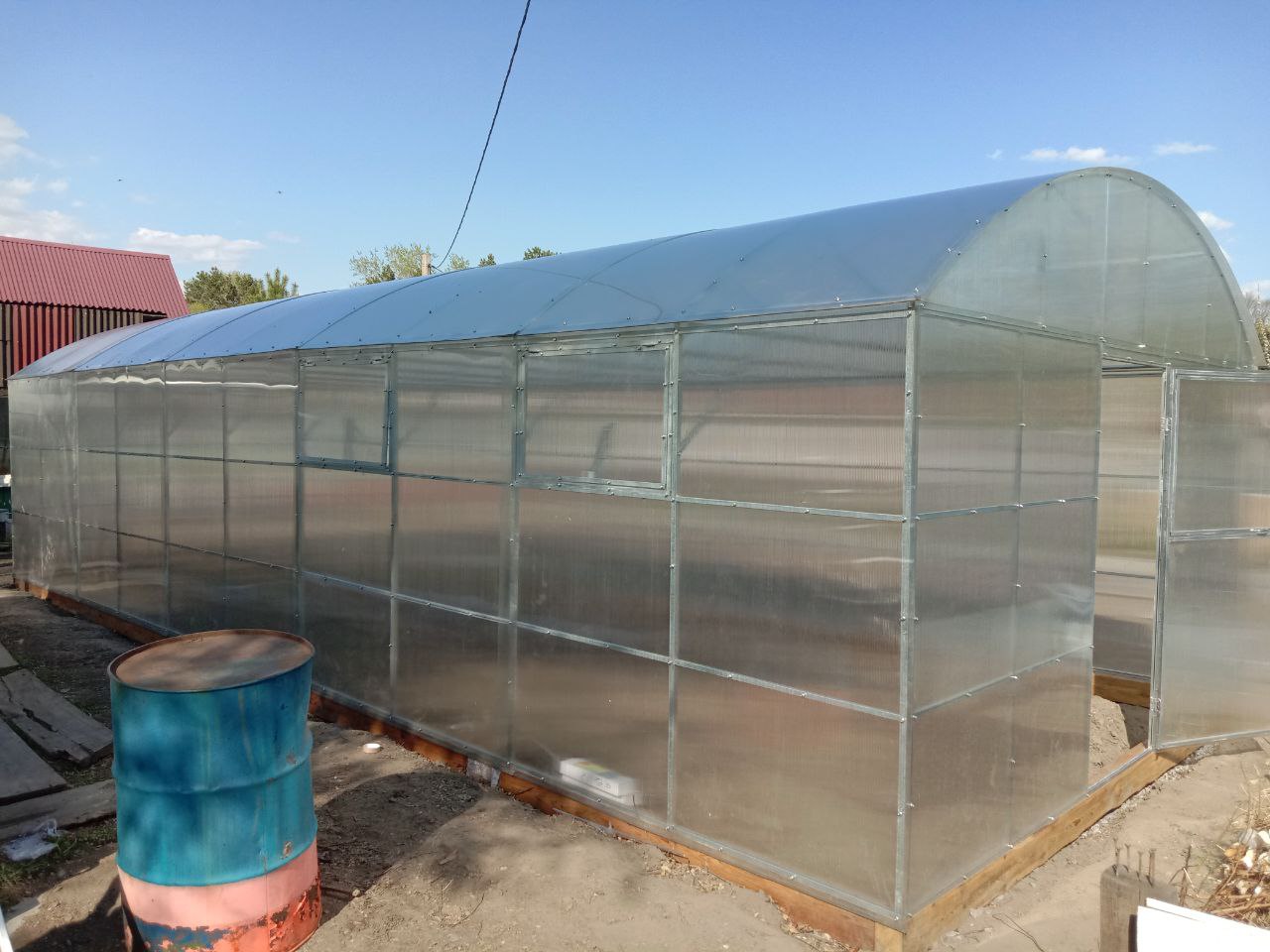 Благодаря правильному раскрою, двери и форточки теплицы обрамлены заводскими запаянными краями СПК, а это значит, что внутрь листа не попадает пыль, все торцы ровные и красивые.