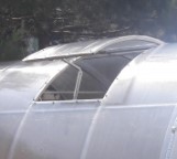 Форточка изготовлена из металлического профиля 25х25 мм, перемычки "связи" - 20х20 мм. Толщина металла каркаса — 1 - 1,2 мм. И представляет собой рамку изогнутую по форме дуги теплицы. Форточка устанавливается между дуг, путем крепления рамки и самой форточки к поликарбонату кровельными саморезами